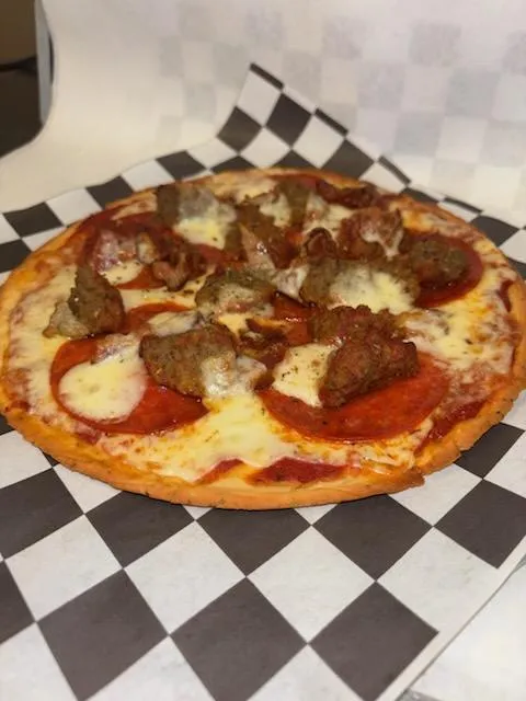 Pepperoni, Salami, Banana Peppers, Olives and Mozzarella