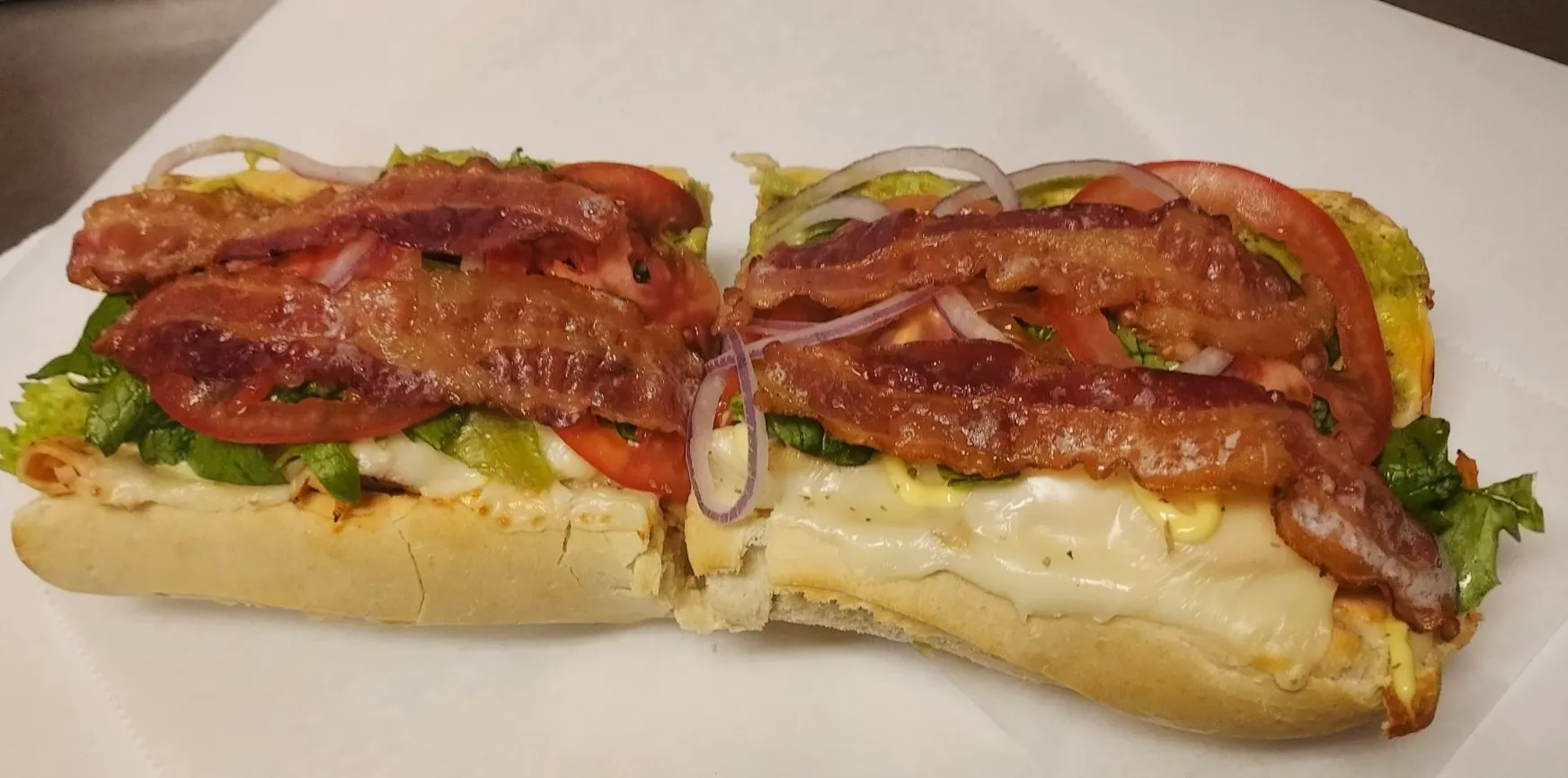 chicken + buffalo sauce + bacon + avocado + pepperjack